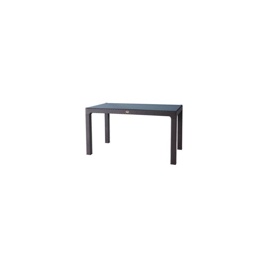 En polypropylène effet rotin. Avec pieds réglables et trou pour parasol.