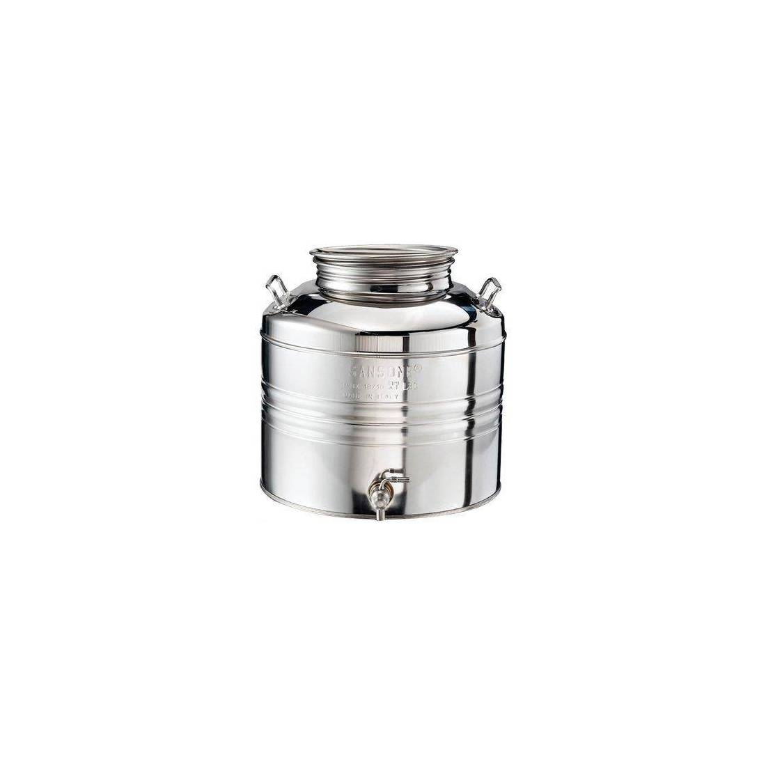 En acier Aisi 304 BA. La fermeture hermétique, équipée d'un joint alimentaire, permet un transport sûr et facile. Prédisposé pour un robinet.