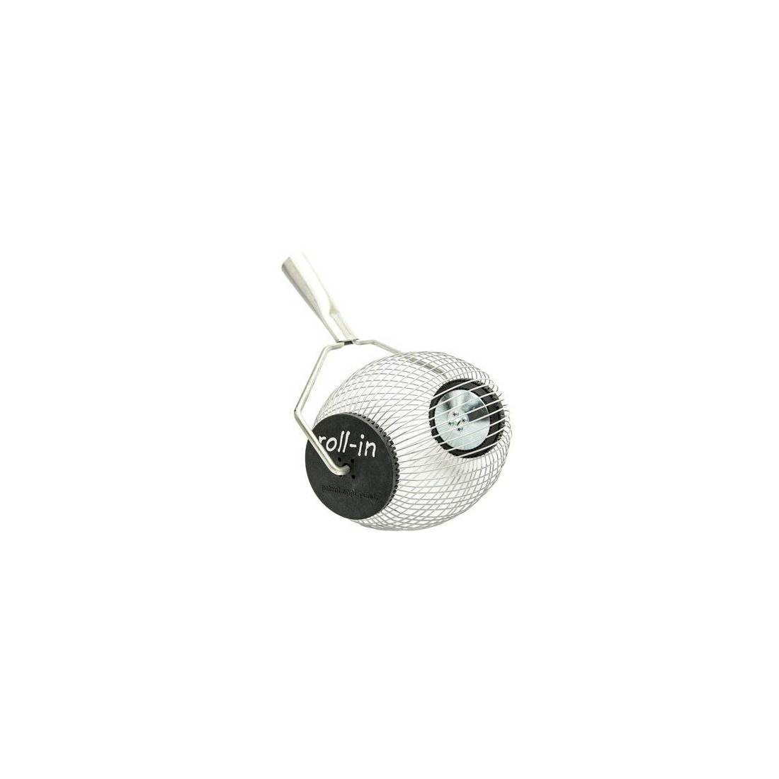 Système de ramassage innovant qui permet de ramasser des objets au sol sans se baisser. La cage métallique roule et capture et conserve à l'intérieur des fruits et des objets ronds tels que des noisettes, des olives, des amandes, des glands et autres fruits similaires. Avec des fils interchangeables et la possibilité de varier le diamètre de ramassage en retirant un fil tous les deux ou deux fils tous les trois. Avec trou pour poignée.