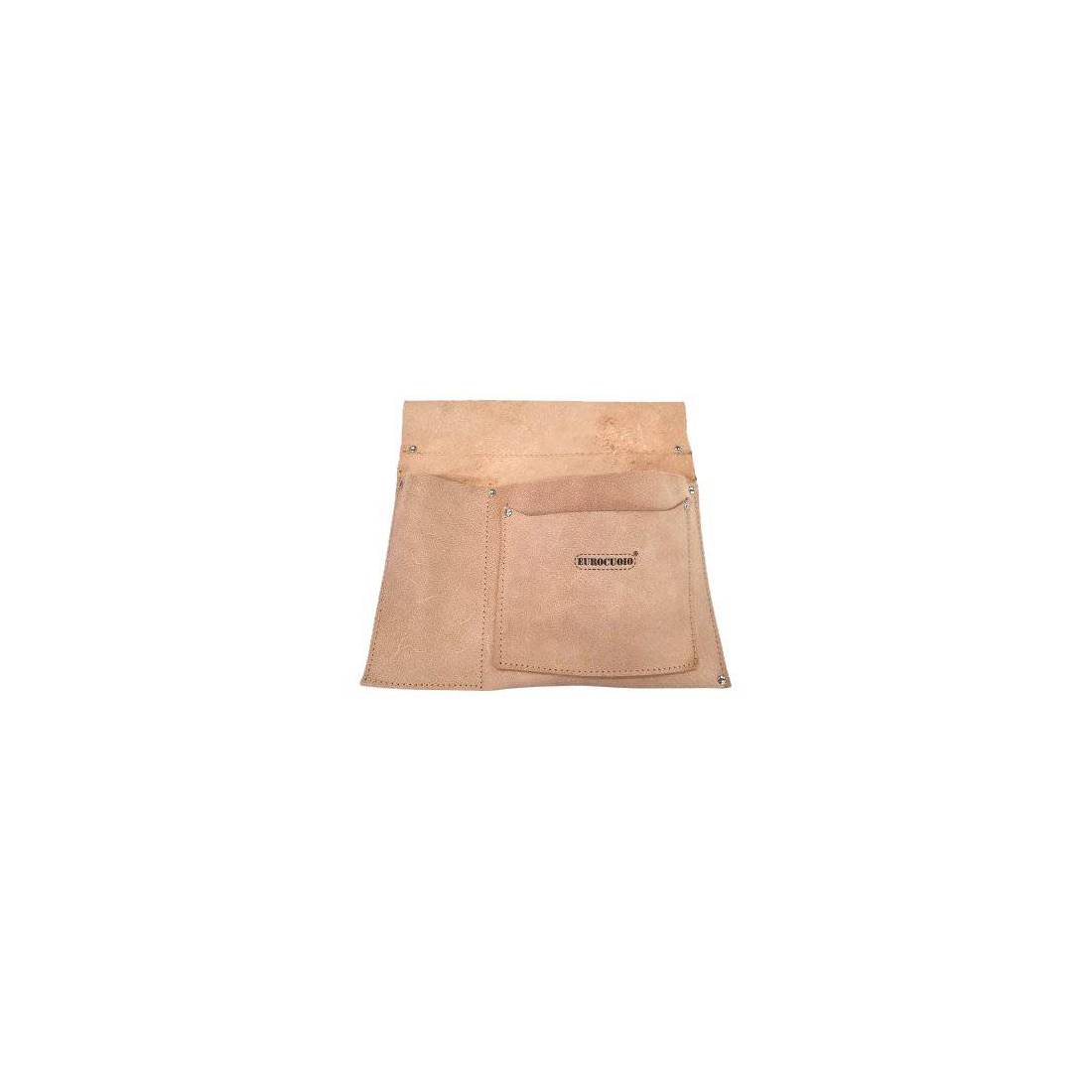 En cuir bovin. Avec trois poches. Avec passants pour ceinture.