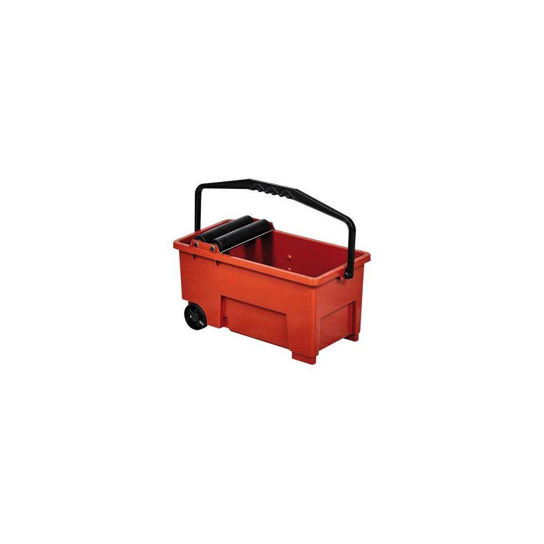 Cuve en plastique antichoc équipée de deux roues et deux pieds pour faciliter son déplacement. Deux rouleaux en plastique sur des bagues anti-usure et grille en plastique.