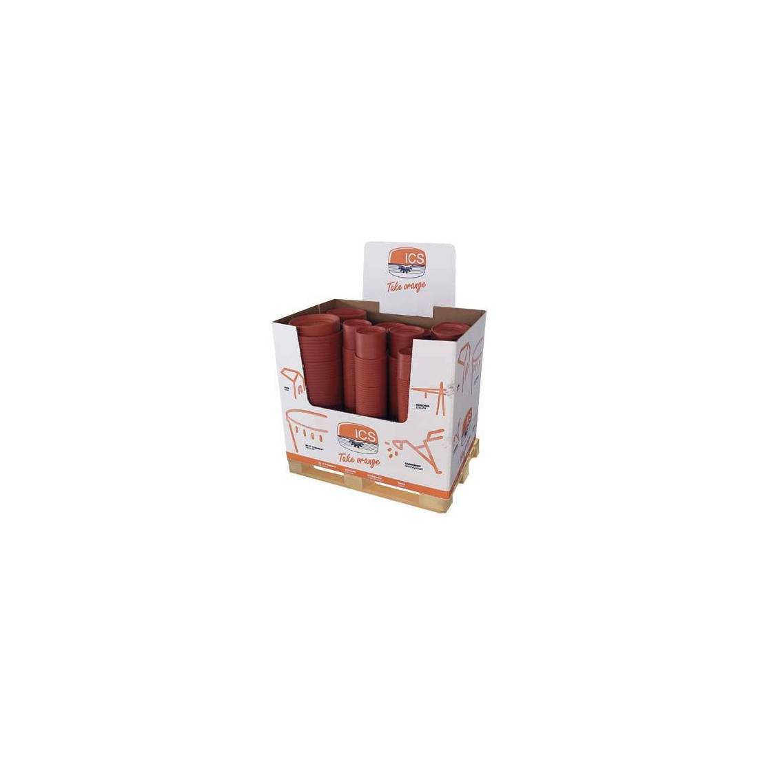 Assortiment de pots et soucoupes en polypropylène. Couleur terre cuite. En présentoir.