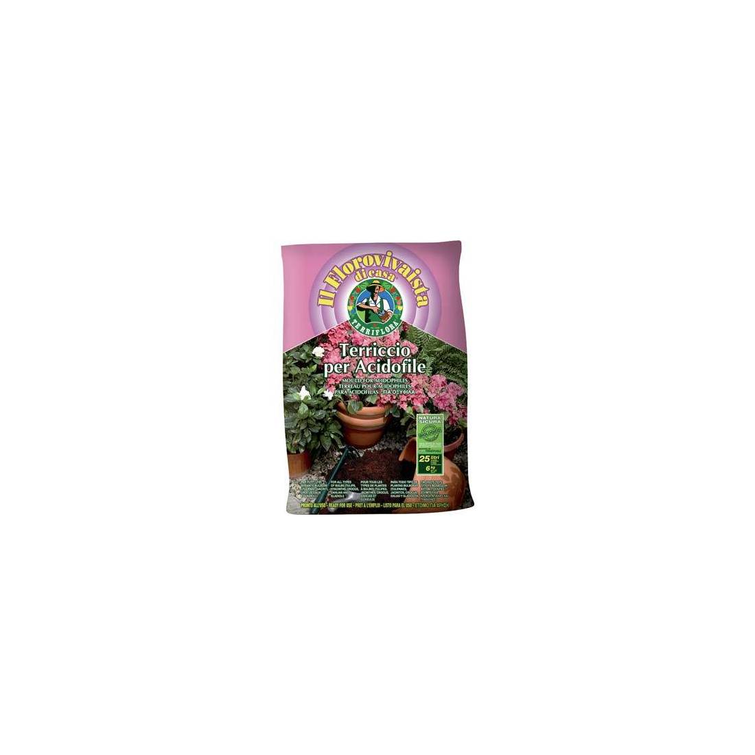 Idéal pour le rempotage et la culture des azalées, rhododendrons, hortensias, gardénias, fougères, bruyères et, en général, pour toutes les plantes qui ont besoin d'un terreau acide et fertile. Composé de tourbe blonde et brune (50 %), de fumier mûr et d'un mélange de matières végétales.