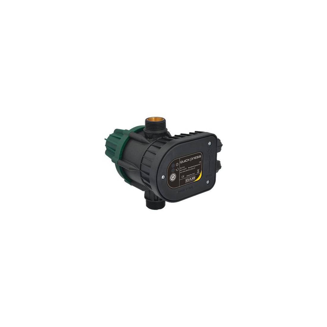 Dispositif qui contrôle la mise en marche et l'arrêt de la pompe sans utiliser de vase d'expansion, afin de protéger la pompe contre le fonctionnement à sec. Avec pression minimale de redémarrage réglable et redémarrage manuel et automatique. Pression maximale de service 15 bars. Calibrage de mise en marche 1,5 bar. Raccords : entrée DNA GAS 1" M, sortie DIM GAS 1"M. Fourni sans câble.