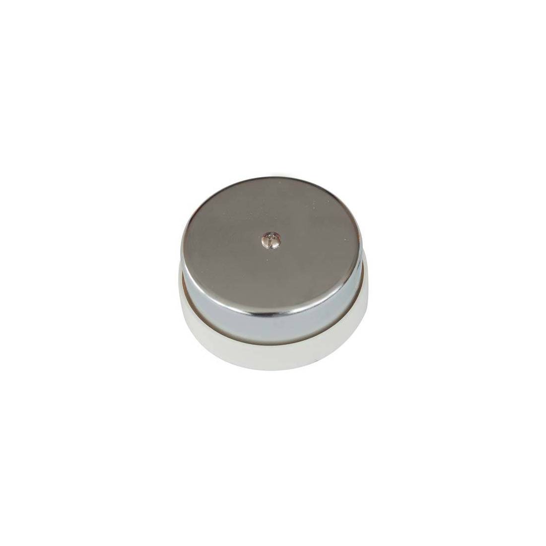 En forme de tympan, mural. Couvercle chromé. Diamètre 75 mm. Tension d'alimentation 110/230 V. Son strident.