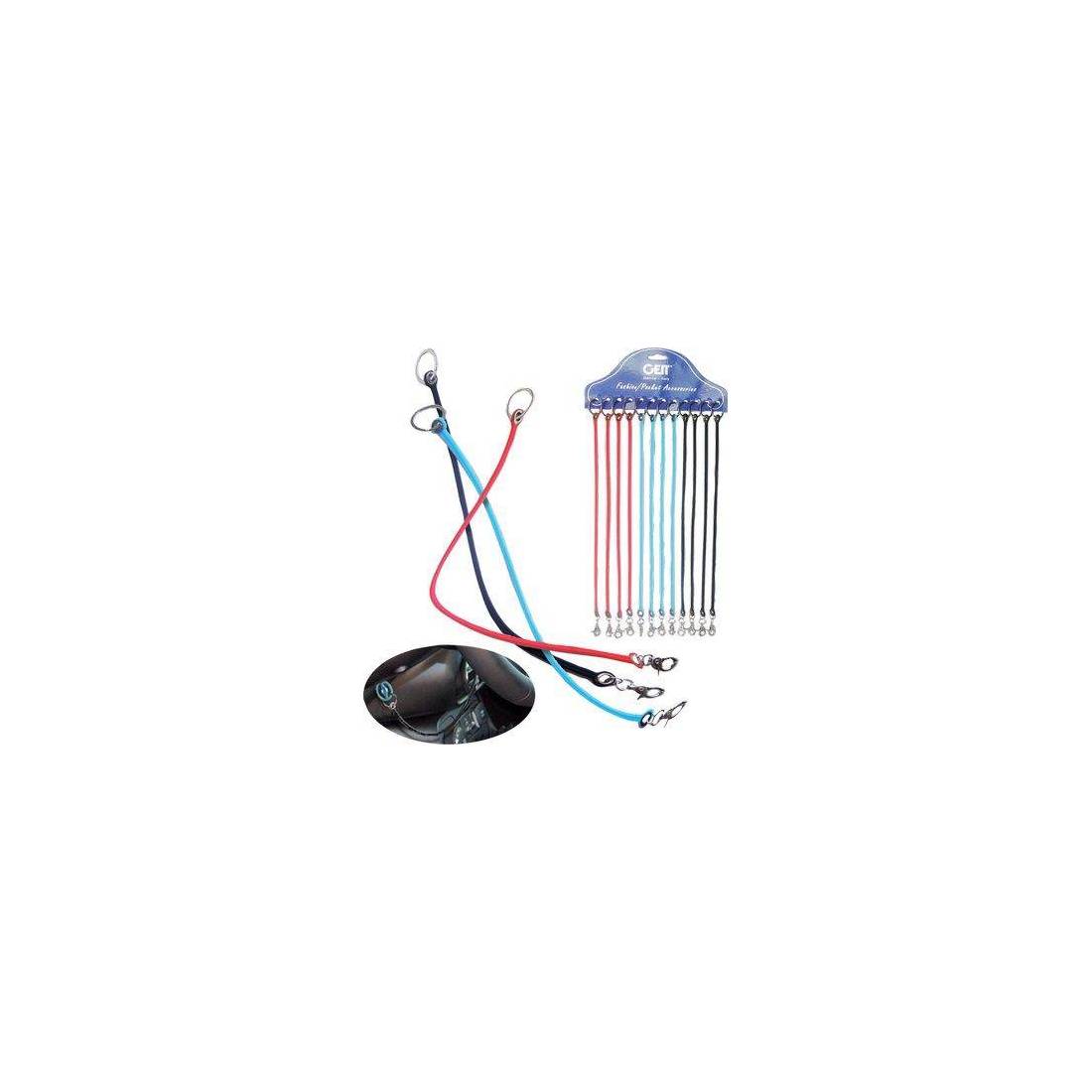 Cordon en silicone, couleurs assorties. Avec anneau et mousqueton. En cartouche de 12 pièces.