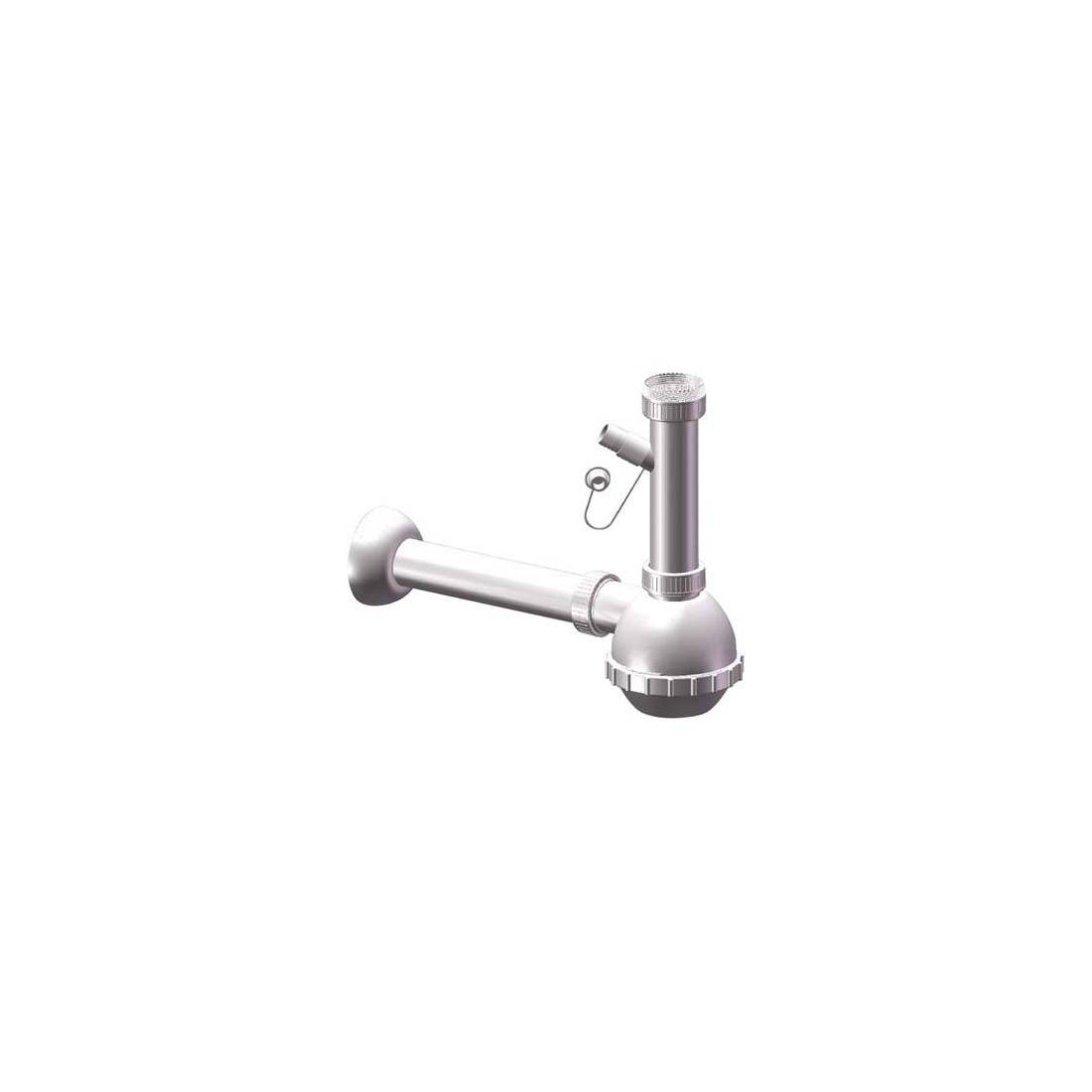 En polypropylène. Sans bonde. Diamètre de 32 à 40 mm. Avec évacuation pour lave-linge.