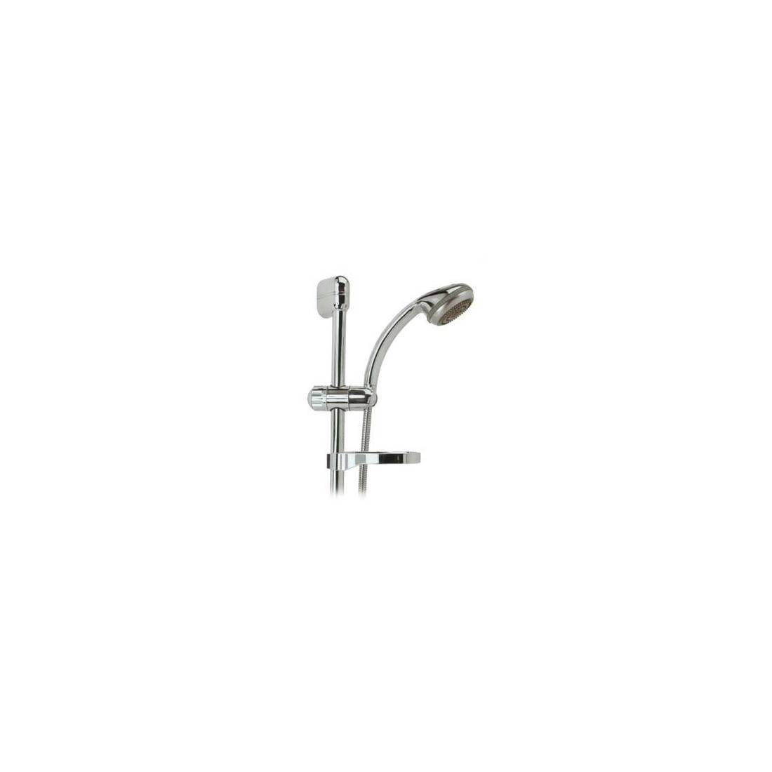 En ABS chromé. Flexible de 150 cm de longueur en acier inoxydable. Avec tige ronde de 25 x 60 mm. Douche de 90 mm de diamètre. Avec porte-savon.