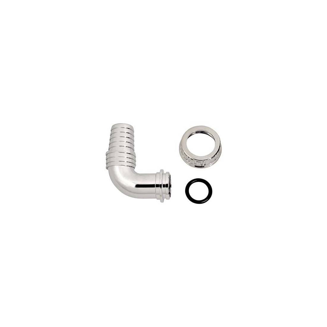 En polypropylène chromé. Raccord avec bague femelle de 1", raccord de tuyau de 17/22 mm. Avec bague et joint torique.