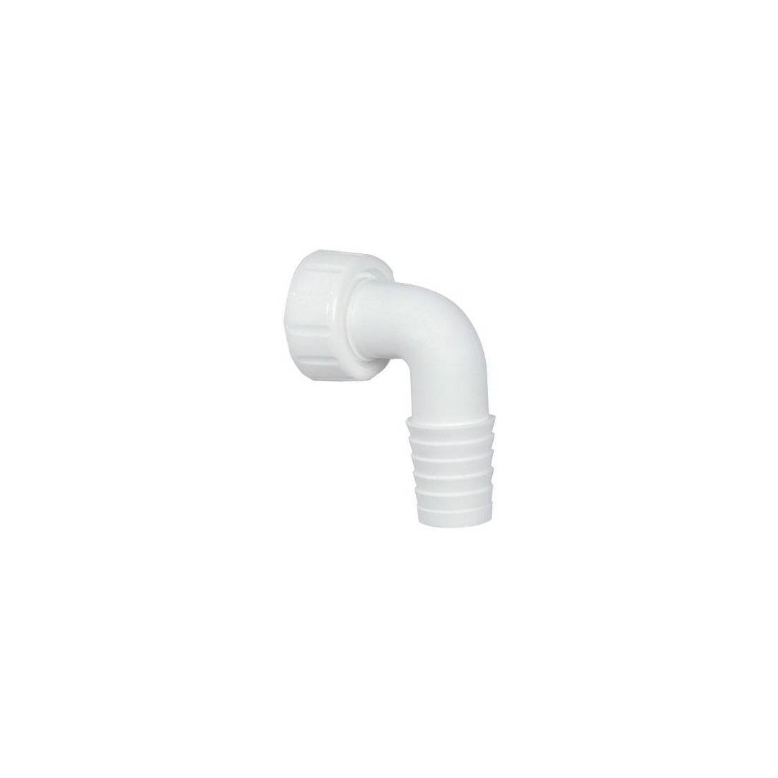 En polypropylène chromé. Raccord avec bague femelle de 1", raccord de tuyau de 17/22 mm. Avec bague et joint torique.