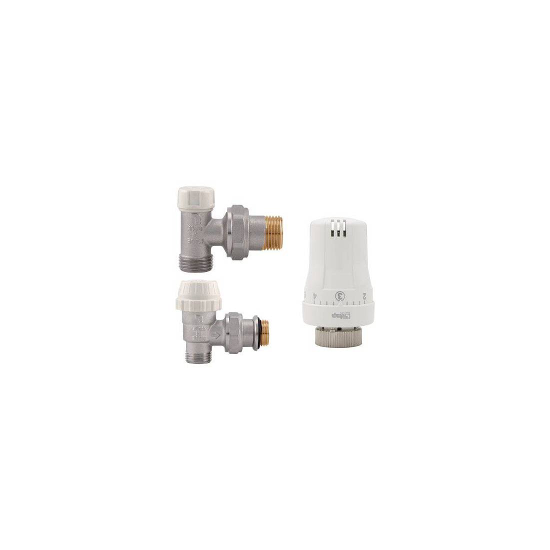 Composé de : 1 support coudé, 1 vanne d'angle, 1 commande thermostatique.