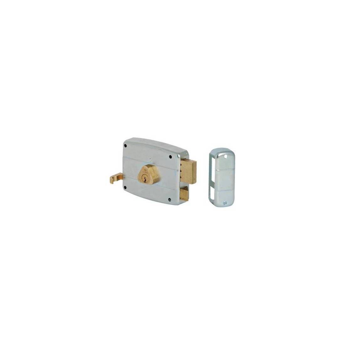 Avec cylindre interne et externe fixes. Pêne demi-tour. Fermeture avec pêne dormant à 2 tours. Tirant. En acier zingué. Fourni avec : 1 gâche, 3 clés plates et vis de fixation.