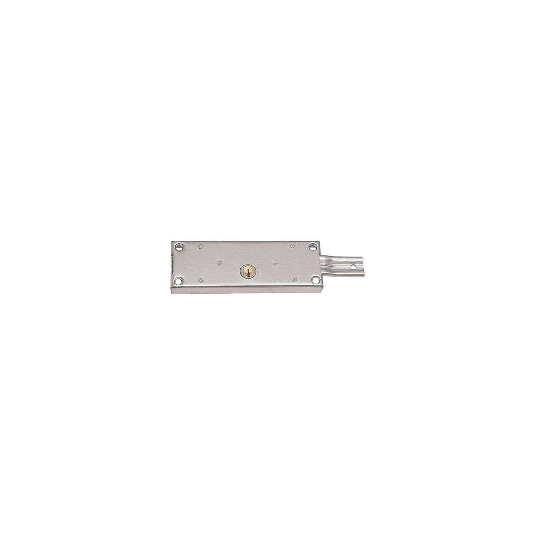 Avec cylindre rond fixe de 25 mm de diamètre. Pour installation centrale avec pênes droits à 1 tour. Course des pênes 25 mm. Boîtier en acier galvanisé de 155x56 mm, épaisseur 15 mm. Fourni avec : 3 clés plates.