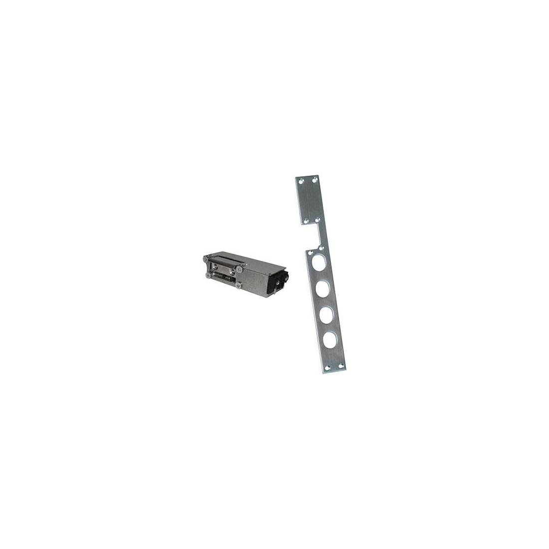 Pour porte blindée. Avec loquet ouvert. Avec anti-répéteur interne. Tension 8-14 V. Précharge 120 N. Résistance 4000 N. Durée de vie 200 000 cycles. Dimensions : 32 x 89 x 23 mm. Contre-plaque 9530/FI en acier galvanisé 35 x 247 x 3 mm.