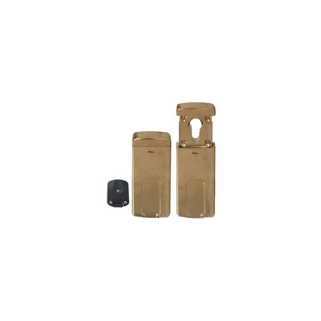 Système de protection magnétique avec fermeture coulissante pour portes blindées avec cylindre européen. Fourni avec deux clés à codage magnétique et une carte de propriété pour la reproduction de la clé. Corps en laiton. Dimensions : 55 x 110 mm. Clé magnétique de rechange Art. 82.147.62.