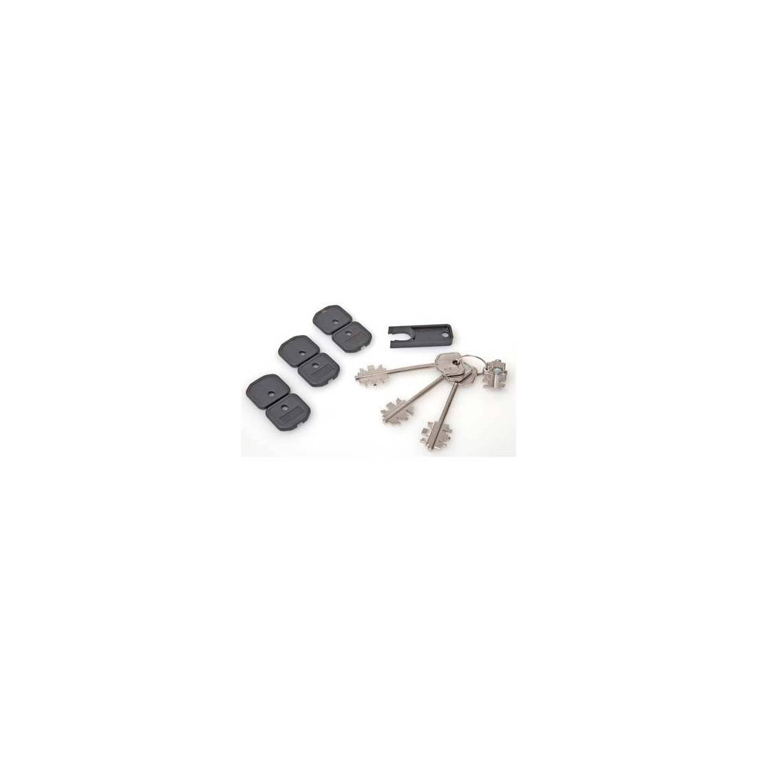 Étui scellé contenant 3 clés droites à double panneton. Complet avec bloc pour changement de codage, extracteur et poignée noire.
