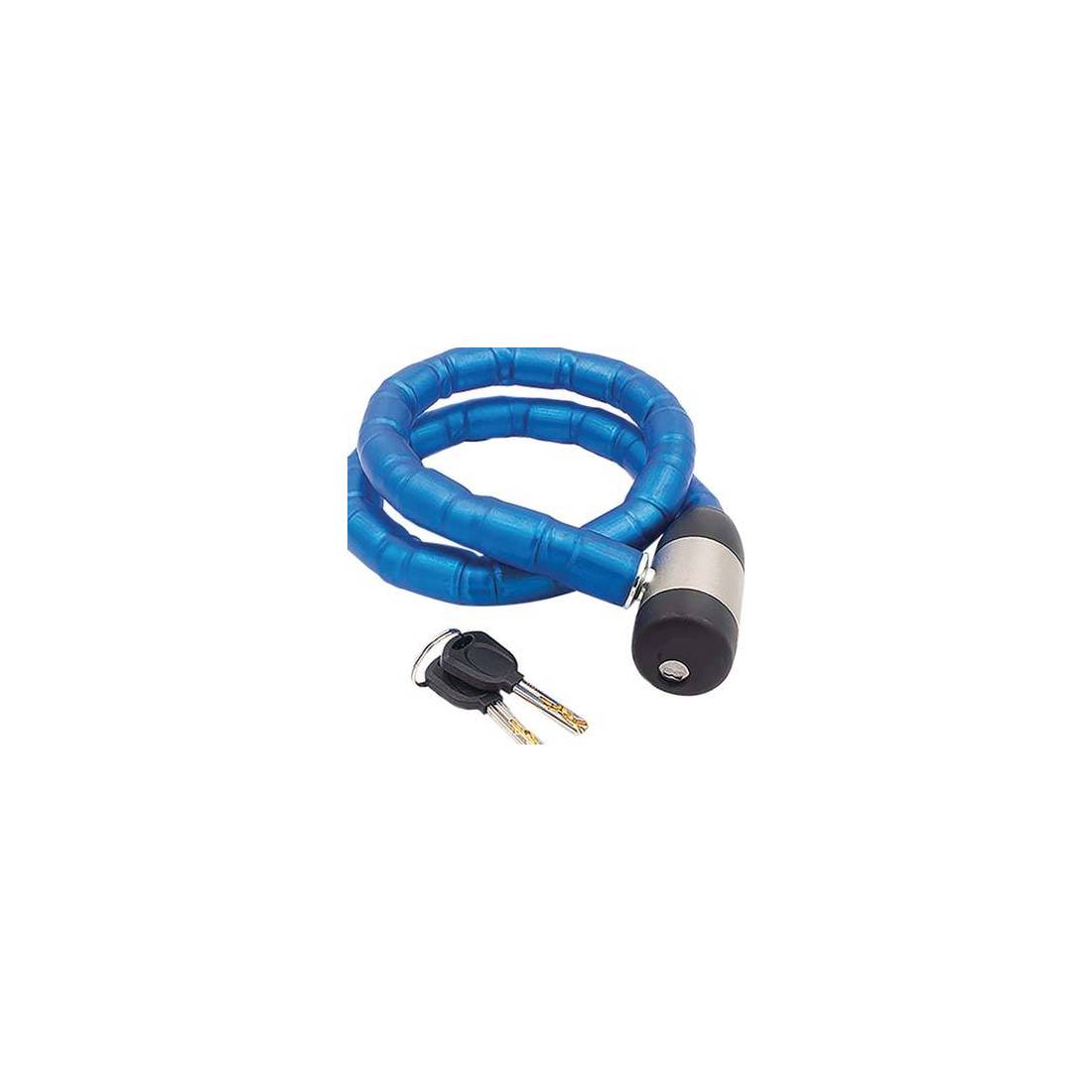 Câble blindé recouvert de PVC. Fermeture automatique. Avec 2 clés fournies.