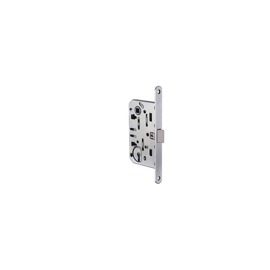 Pêne réversible avec verrou intégré et rappel carré de poignée 8 mm. Face avant avec bord arrondi 18 x 196 mm. Hauteur du boîtier 132 mm. Fourni avec : 1 clé brevetée.
