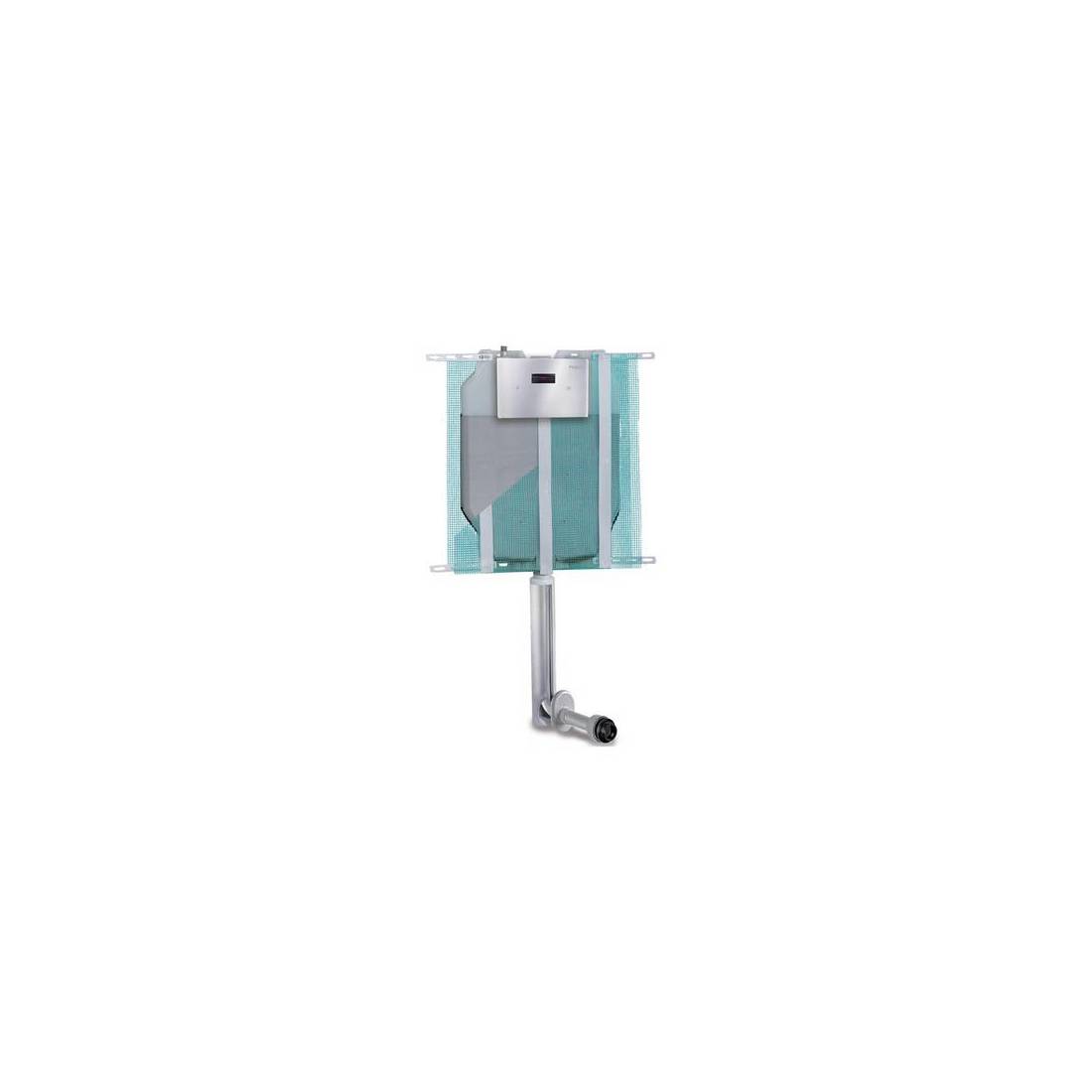 CODE D'USINE : 2115000201. Sara Tronic 9 l 6 l 4 l sécurité maximale anti-vandalisme et anti-condensation. Domaines d'application : pour murs en maçonnerie. Pour WC au sol. Rinçage réglable 9 l 6 l 4 l. Distance de détection de l'utilisateur de 0,50 à 1,50 m. Caractéristiques et équipement : Réservoir en polyéthylène d'une épaisseur de 7,5 cm. Isolation contre la condensation. Grille de fixation prémontée. Plaque en acier inoxydable anti-vandalisme avec capteurs IR, vis anti-dévissage avec clé fournie. Porte avec servomoteur et carte complète avec Bluetooth. Raccordement hydraulique par le haut décalé à gauche. Robinet d'arrêt 1/2" avec support. 4 supports avec vis pour la fixation du réservoir. Tuyau de rinçage 35x11 réglable en hauteur (+2-2 cm). Coupelles de protection et bouchon pour le réglage du tuyau de rinçage. Rosace excentrique et manchon 22 cm. Pince combinée D.48-58 mm avec cache-pince. Manchon d'augmentation de D.40 à D.45 mm avec OR 143 et pince D.55-44 mm. Paquet de lubrifiant pour joints. Protection pour porte et pièces internes. Alimentation 220 VAC - 12 VDC avec câble de 3 m et connecteur. Boîtier encastrable et gaine de 3 m (DianFlex).
