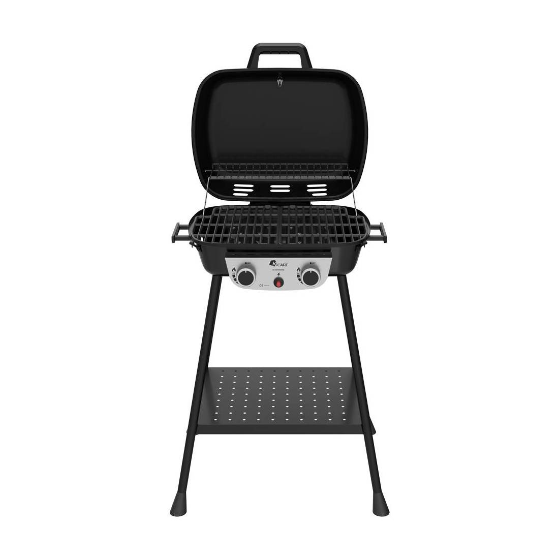 Dotato di doppio bruciatore da 2,5 kW ciascuno (potenza totale 5,0 kW), offre una superficie di cottura di 42x37 cm. Il coperchio è realizzato in acciaio verniciato a polvere nera, con focolare in acciaio ad alta resistenza al calore. Dotato di griglia di cottura in ghisa (per una distribuzione uniforme del calore) e griglia scaldavivande in acciaio smaltato. Accensione piezoelettrica integrata. Dotato di pannello comandi in acciaio inox, fondo e gambe verniciati a polvere con fori preforati. Regolatore e tubo non inclusi. Dimensioni: cm 64,5 x 51,3 x h. 90,3.