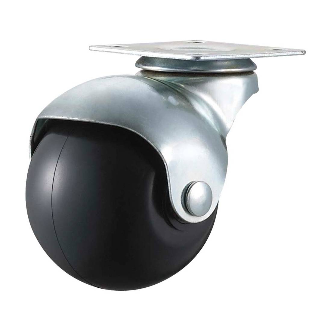 In nylon, supporto a cuffia sferica in acciaio. Piastra girevole. Impiego consigliato per mobili ufficio, mobili metallici, espositori. In blister.