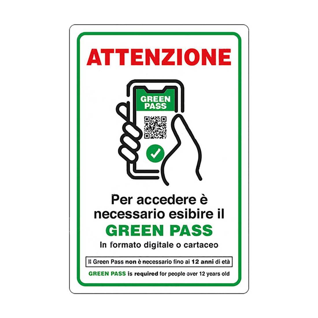 CARTELLO 'ACCESSO CON ESIBIZIONE DI GREEN PASS' cm 20 x 30 - alluminio