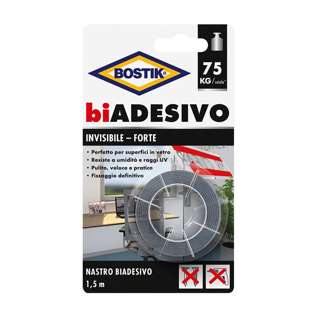 Tipo extra forte, totalmente trasparente, per montaggio e fissaggio permanente di oggetti in interni e in esterni. Alternativa invisibile a viti e chiodi. Tenuta permanente e sicura su quasi tutte le superfici lisce tipo vetro, metallo, piastrelle, plastica, legno verniciato e pietra. Elevata resistenza a raggi UV e alle temperature. Ogni rotolo ha una portata totale di circa 75 kg. Spessore 1 mm (senza liner). In blister.