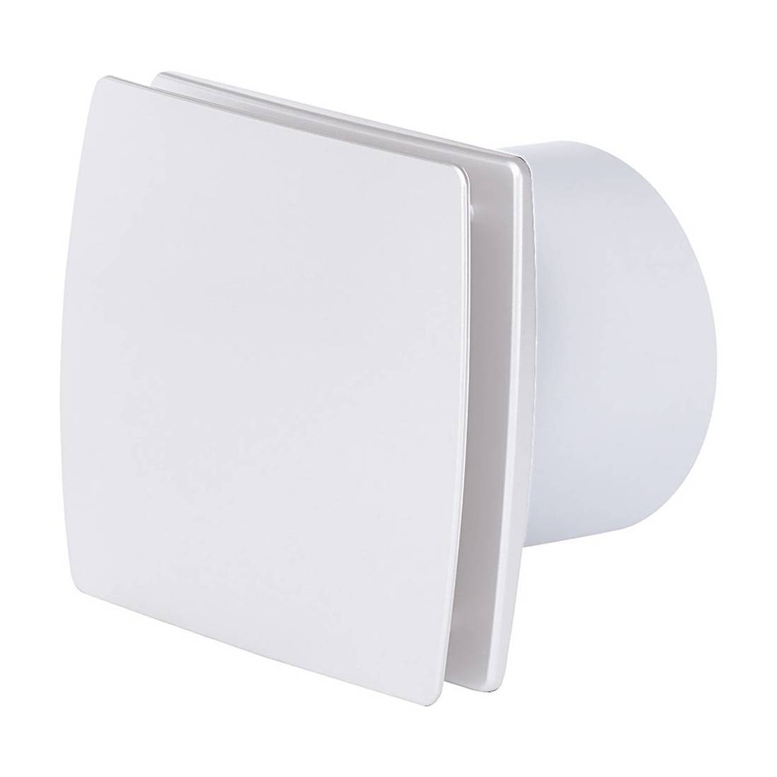In pvc. Dotato di sensore umidità e timer. Incassabile a muro con sistema a imbocco, funzionamento tramite interruttore della luce. Rumorosità 39 dB. Tensione 230V-50 Hz.