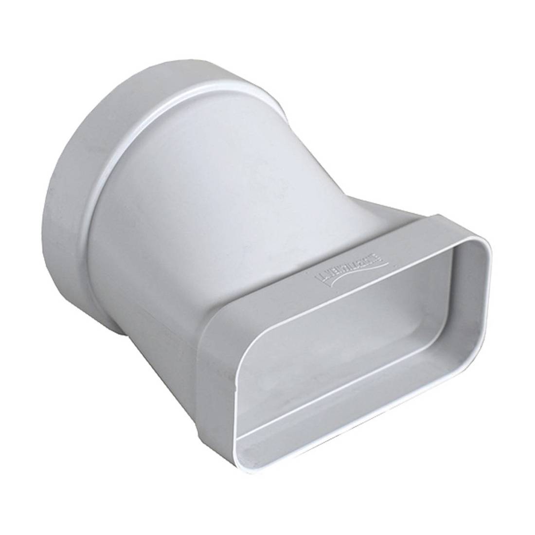 Di tipo orizzontale. Da tubo tondo a rettangolare e viceversa. In pvc, colore bianco.