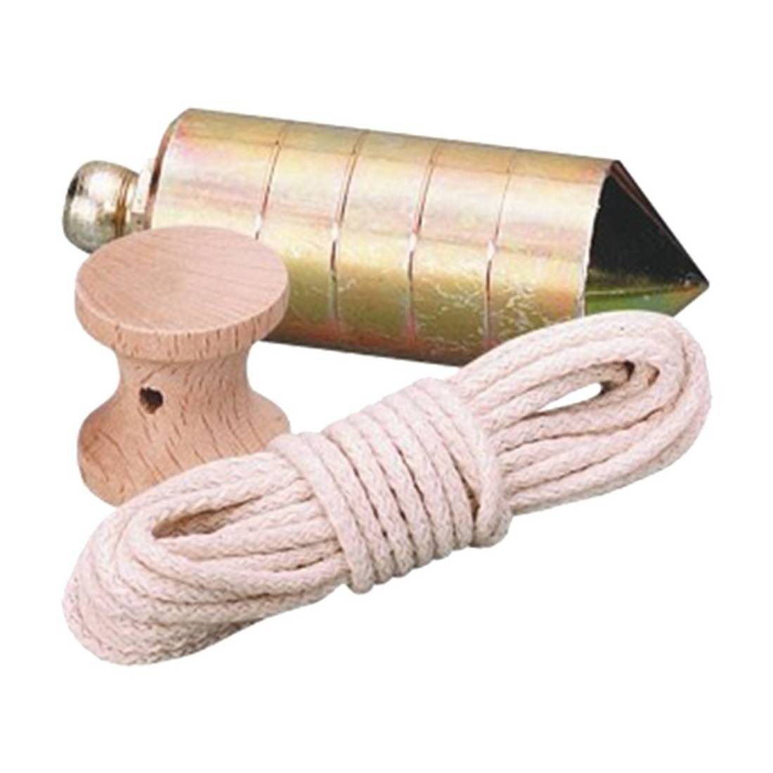 Completo di cordino da 5 metri, piastra in acciaio e disco in legno. Strumento specifico per controllare ed allineare elementi verticali in lavorazioni quali pareti, pilastri, muri.