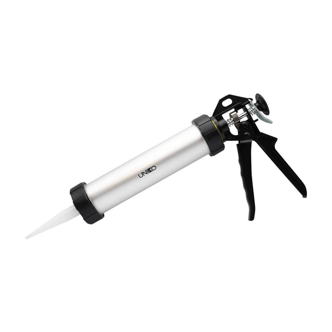 Indicata per l’applicazione di sigillanti e collanti in cartucce e sacchetti. Dotata di un rapporto di spinta 12:1 e una potenza superiore a 1800N, regolare e controllata, anche con materiali a viscosita' media. Manico in alluminio (per una maggior leggerezza), grilletto in ferro e corpo con forma tubolare. Per cartucce da 310 ml.