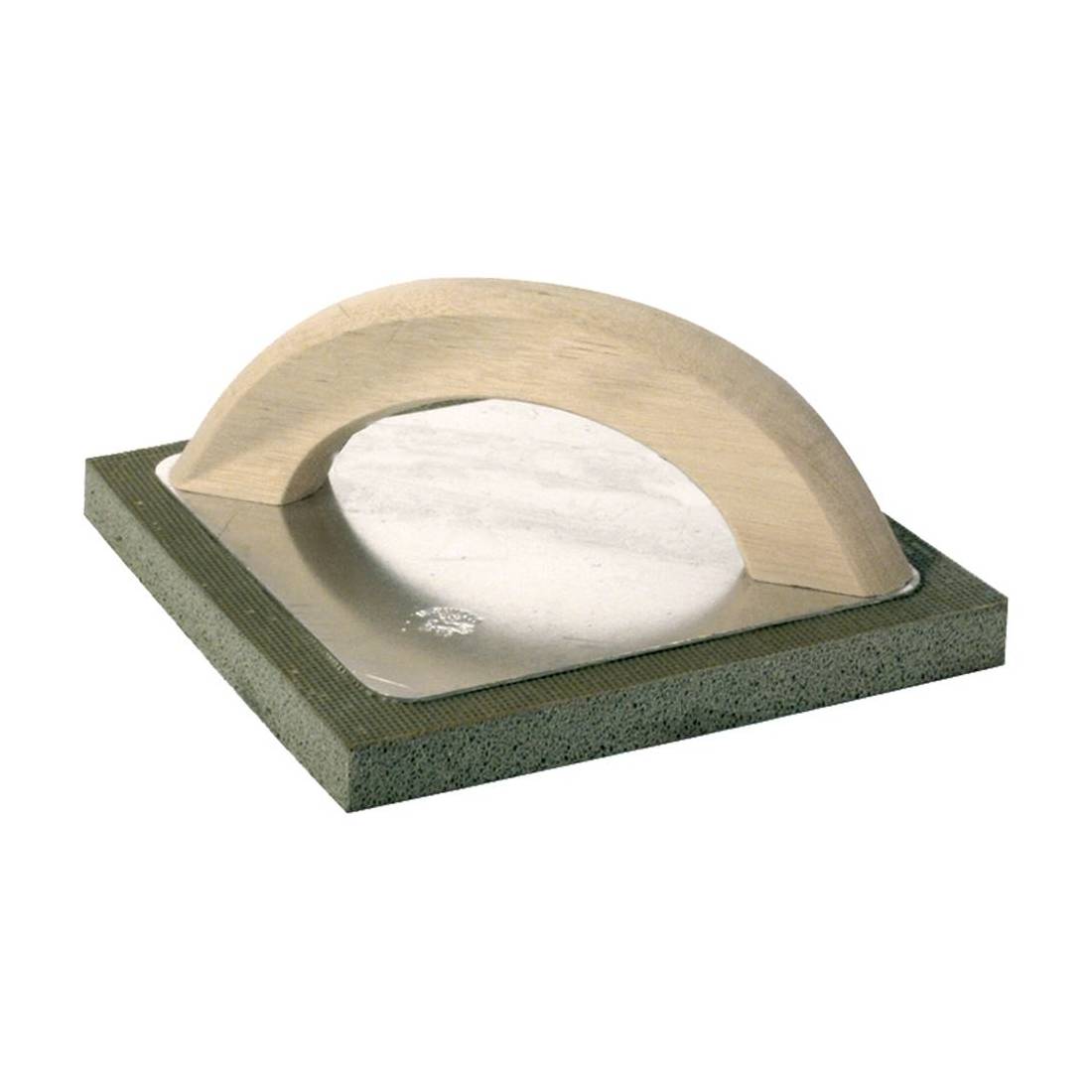 Supporto in alluminio, manico in legno.Gomma spugna mm 14, dura.Colore grigio.