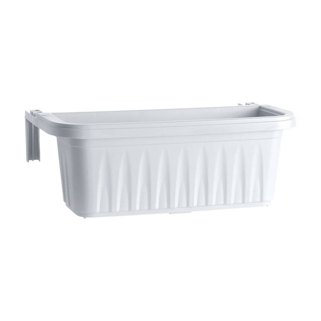In plastica. Adatta per piante da balcone. Con agganci regolabili e riserva d'acqua.