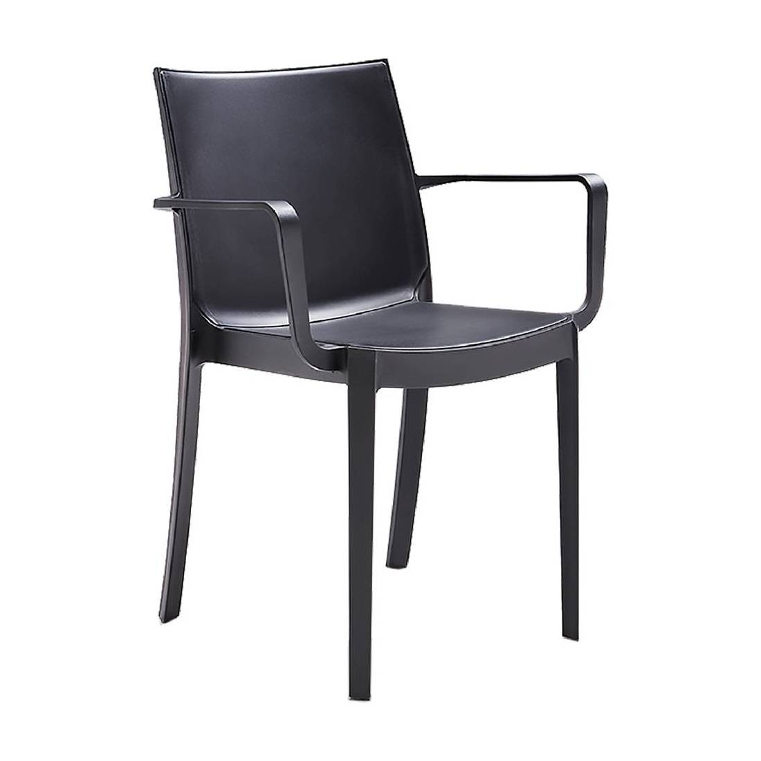 Con braccioli. Realizzata interamente in polipropilene, coniuga funzionalità e design con elevata resistenza agli agenti atmosferici e raggi UV. Giusto compromesso per chi desidera un prodotto robusto, piacevole e che duri nel tempo. Con piedini antiscivolo. Dimensioni: cm.58x55xh.82. Impilabile.