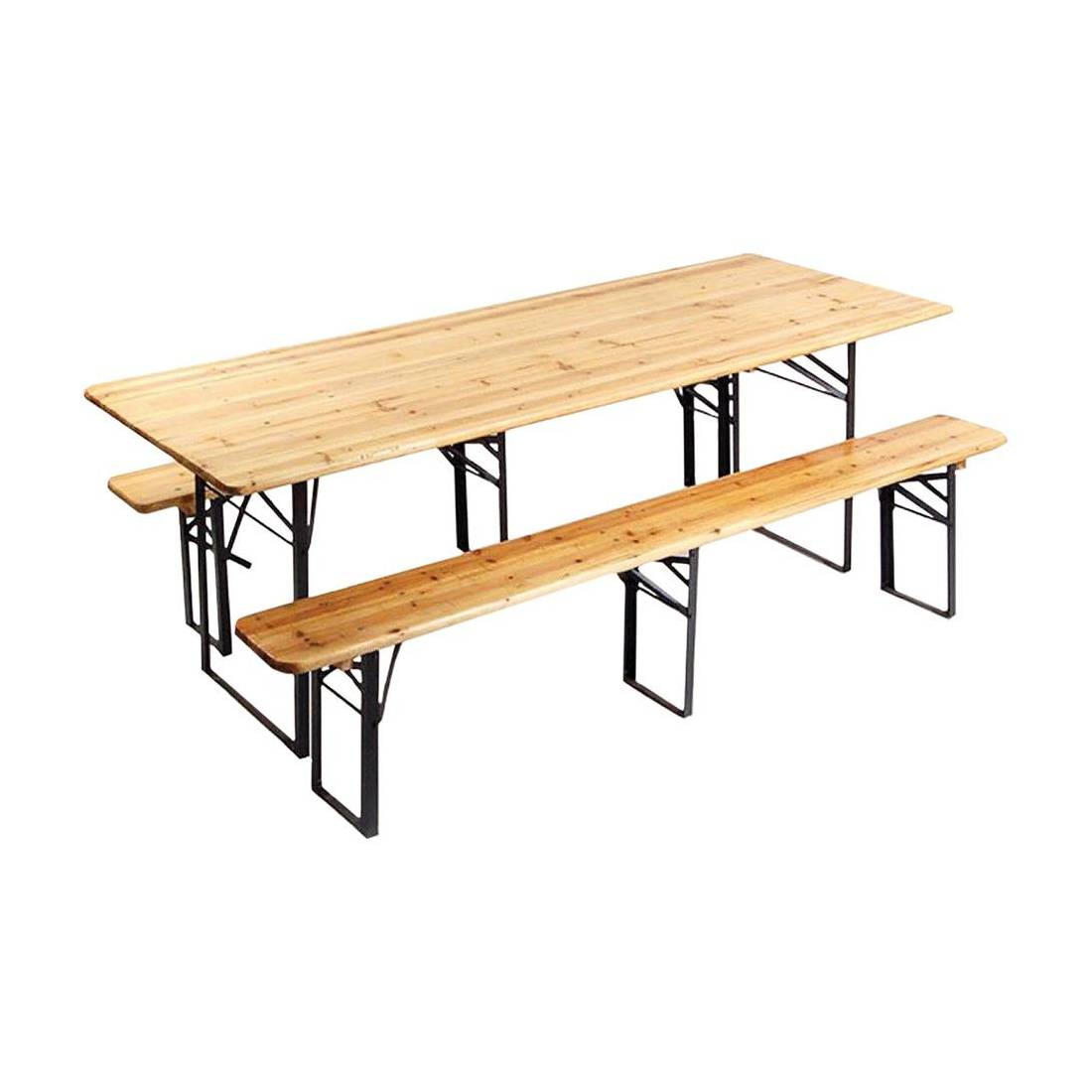Struttura robusta e compatta, composta da un tavolo e due panche (dimensioni cm. 217x25xh.46) con tre piedi pieghevoli. Perfetto per l'uso in spazi esterni come giardini, aree campeggio, parchi o spiagge.