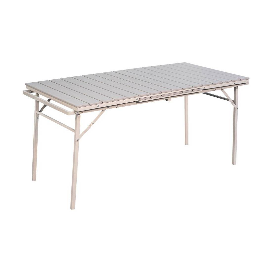 Resistente agli agenti atmosferici a raggi UV, dal design moderno ed elegante. Estensibile. Struttura in tubo di acciaio (sezione mm 25x25x1), piano in polipropilene da 1,4 cm di spessore. Estensibile: cm 166 (piano chiuso) / 214 (piano aperto) x 78xh.76. Richiudibile in formato salva spazio a mo' di valigetta (78x16xh.84,5 cm).
