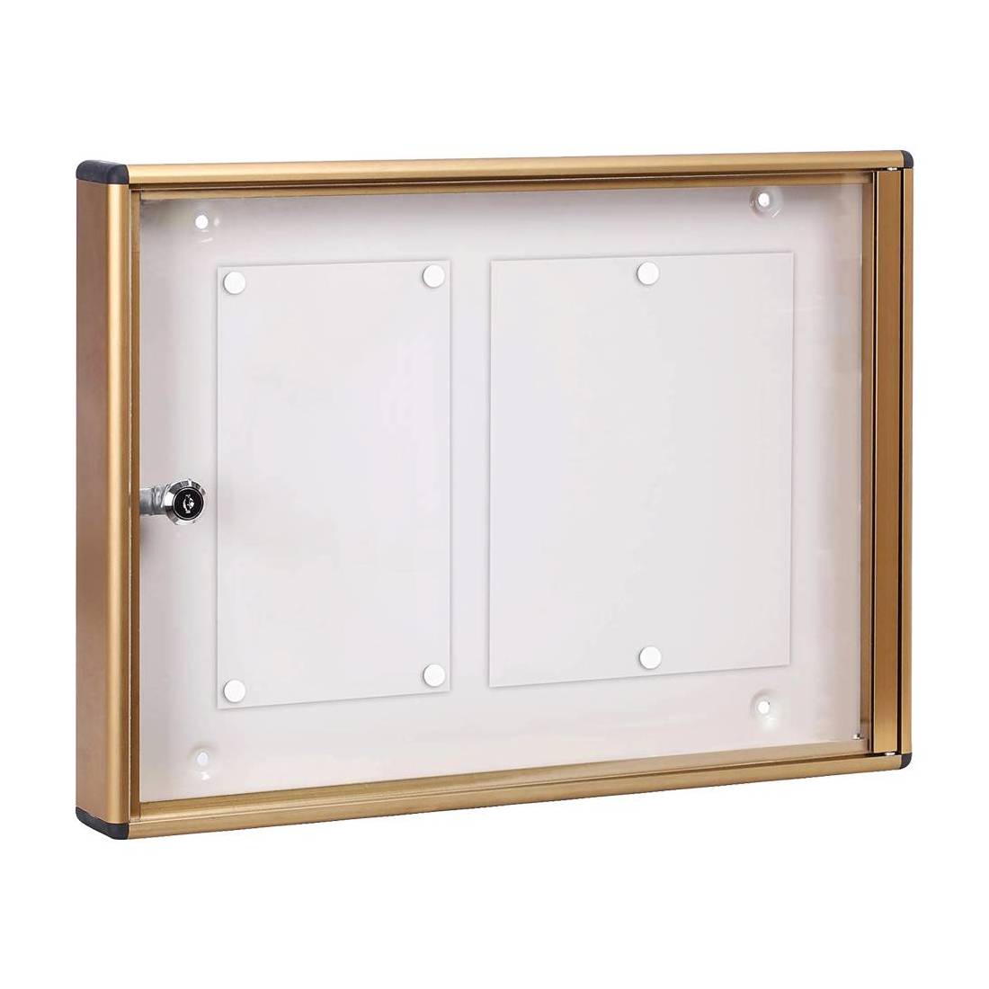 Con un telaio in profilato di alluminio anodizzato e una parte posteriore in acciaio zincato da 0,6 mm. La verniciatura a polvere protegge la superficie dagli agenti esterni, mantenendo un aspetto pulito e professionale. Indicata per uffici, condomini, scuole e ambienti pubblici.