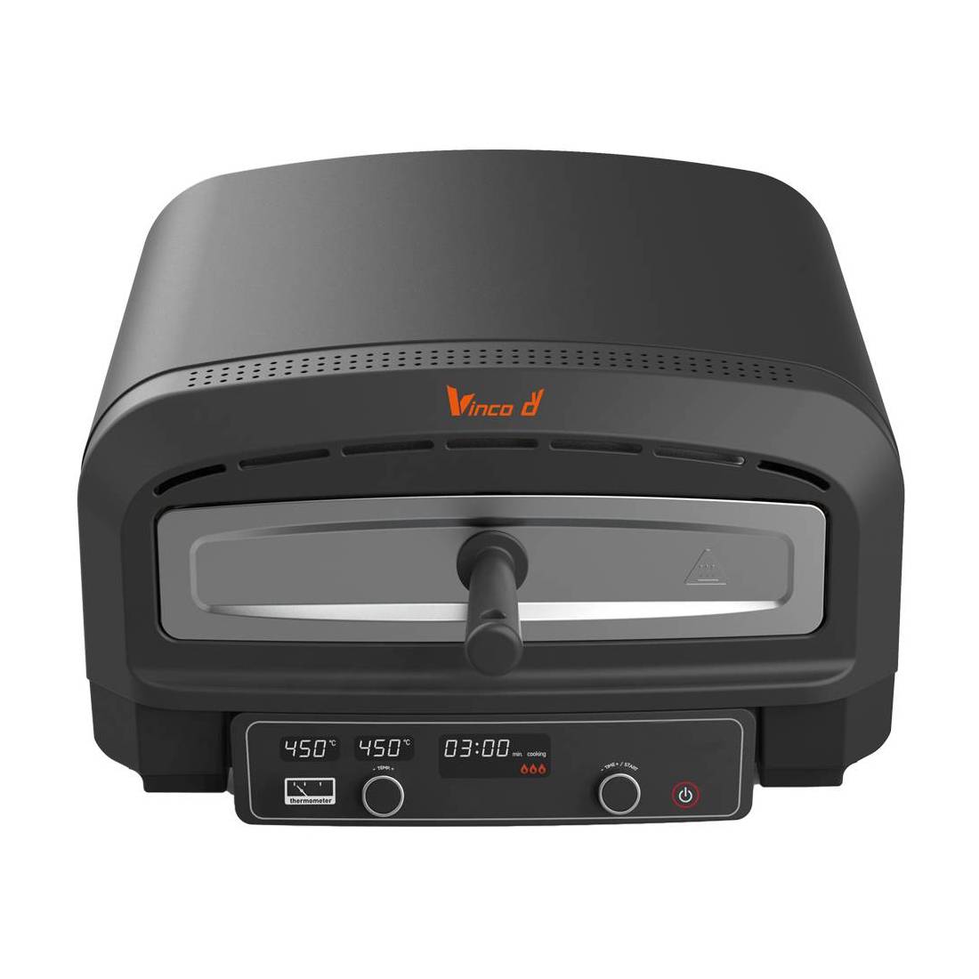 Potenza 2200W, , raggiunge in breve una temperatura massima di 450°C e permette di cuocere pizze fino a 37 cm di diametro su pietra refrattaria, per un risultato croccante come in pizzeria. Dotato di display multifunzione, timer integrato e funzione memoria per temperatura e tempo di cottura. Include pala per pizza e accessori rimovibili per una pulizia agevole. Cuoce una pizza in soli 2 minuti.