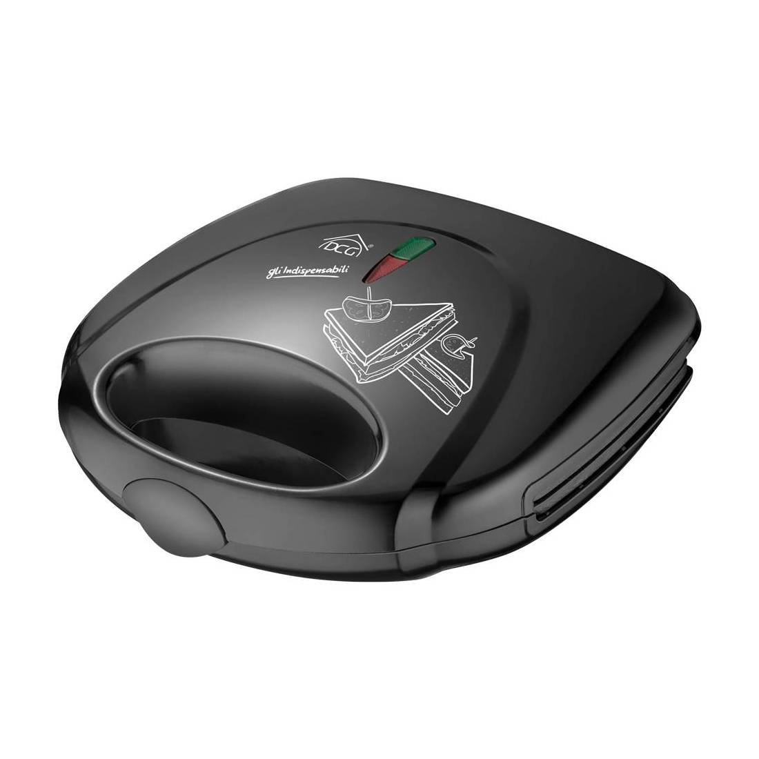 Ideale per la preparazione di toast, sandwich e bruschette. Piastre antiaderenti per facile pulizia, spia luminosa di funzionamento. Temperatura regolata automaticamente da termostato. Maniglia termoisolata, gancio di chiusura piastre. Certificazione A13. Dimensioni: cm. 22,8x23x h.8.