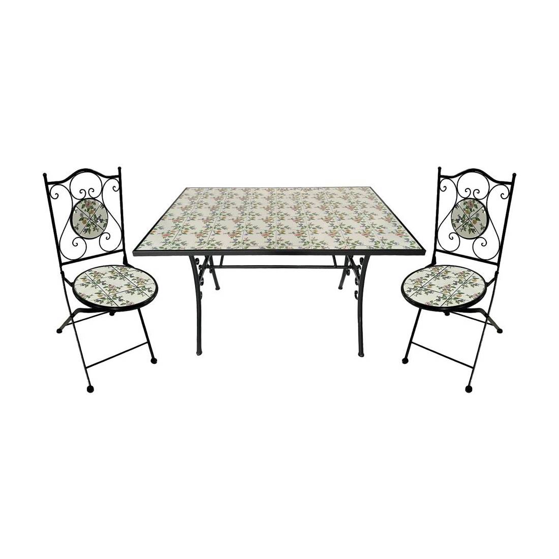 SET TAVOLO MOSAICO DA ESTERNO 'FLORA' cm 120 x 80 x h.75 (tavolo) - cm 38 x 46-92 (sedie)