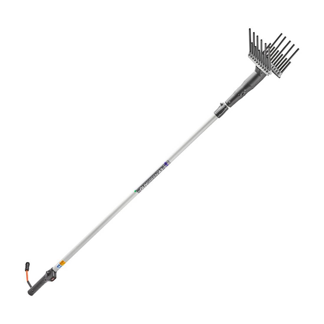 Con movimento a pettini contrapposti. Macchina adatta per i piccoli e medi appezzamenti potati di media vegetazione. Il moto e la conformazione dei rastrelli permettono ottimi raccolti su tutte le varietà di olive. Equipaggiato con asta telescopica (lunghezza totale 2,2>3,1 mt) e relativo sistema di bloccaggio e cavo di alimentazione da 15 mt. Funzionamento a batteria min. 60 Ah. Numero battute 1100 al min. Peso 2,7 kg. Made in Italy.