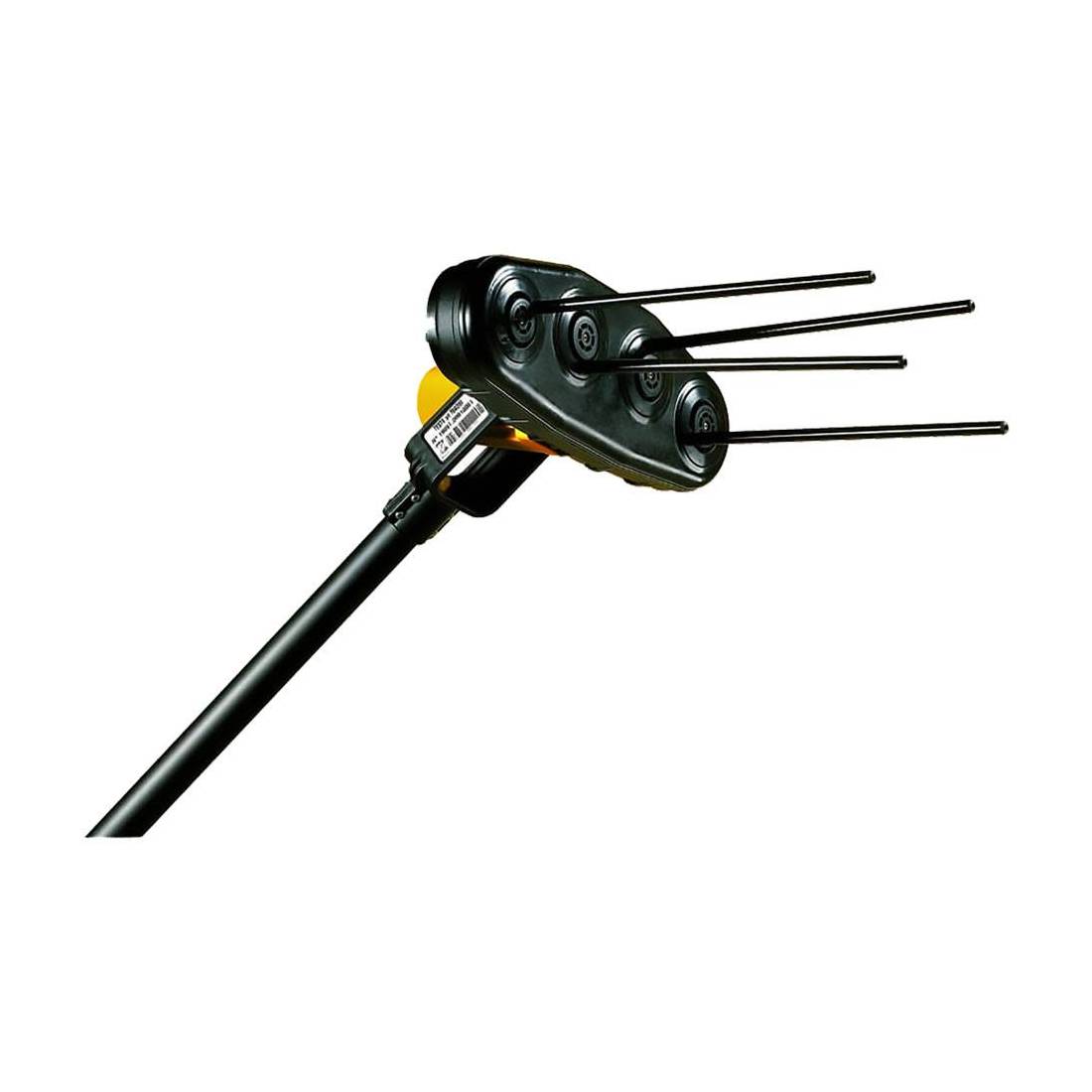 Con movimento rotatorio tronco conico. Testa orientabile 0°-30°-45° a 4 astine in fibra di carbonio. Sistema di controllo sforzo motore. Equipaggiato con asta fissa da 2,5 mt. Cavo di alimentazione da 10 mt con pinze e connettori. Funzionamento a batteria min. 70 Ah. Produttività 70/90 kg/ora. Peso 2,2 kg. circa (senza prolunga). Made in Italy.