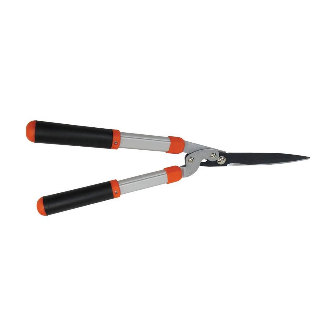 Cesoia a lunghezza fissa con lame ondulate in acciaio S50C, consigliate per rifinitura di siepi e arbusti, specialmente rami di dimensioni medio/piccole. Impugnatura antiscivolo, manici in alluminio con lunghezza totale di 60,5 cm. Lama 21 cm.