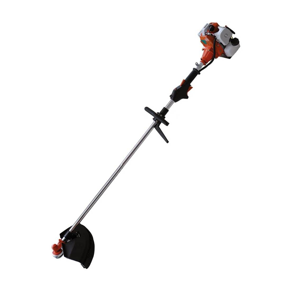 Ideale per lavori di giardinaggio su superfici ampie e difficili da raggiungere, come aree con vegetazione densa. Motore a 2 tempi cc 43 - kw 1,25 (8000 giri/minuto) a benzina. Avviamento manuale. Diametro albero 26 mm, lunghezza 160 cm. Diametro taglio nylon 44 cm, diametro taglio lama metallica 26 cm. Impugnatura ergonomica. Serbatoio 1250 ml. Peso 8,0 kg circa. Certificazione GS CE EURO-V. Fornito con: accessori (testina in nylon, imbracatura e lama 3 denti).