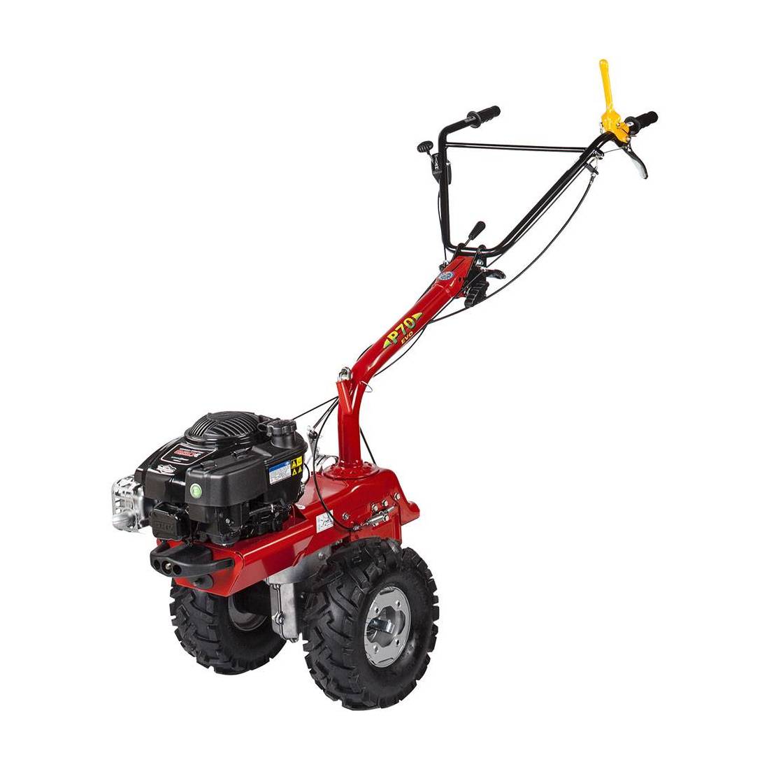 Solo corpo macchina. Multi attrezzo trasformabile da falciatrice ad arieggiatore e zappatrice. Motore 4 tempi Loncin 224 OHV, alimentazione benzina. Doppia configurazione: attrezzo frontale 3 marce + 2 retromarce, attrezzo posteriore 2 marce + 1 retromarcia. Trasmissione a ingranaggi e vite senza fine in bagno d'olio e cinghie. Avviamento a strappo. Manubrio registrabile verticalmente e lateralmente, innesto attrezzi a leva in lamiera con sistema di sicurezza integrato. Ruote trazionate antiforatura profilo tractor con cerchioni (15x6,00-6).