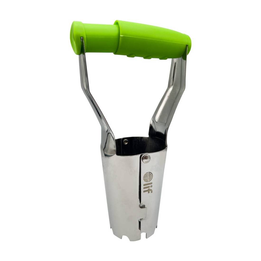In acciaio inox. Impugnatura ergonomica in plastica. Adatto per piantare bulbi e piante.