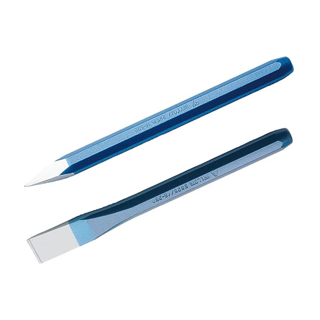 In acciaio di altissima qualità temprato. Trattamento termico differenziato in tre zone: testa, punta e corpo.