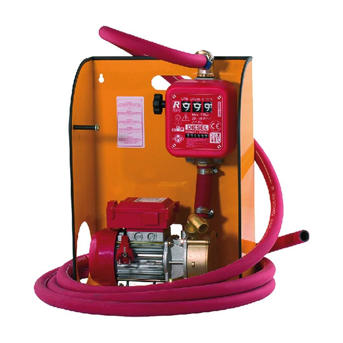 Motore elettrico con pompa in ottone, autoadescante. Fornito di contalitro, mt 5 di tubo, filtro di pescaggio e pistola con chiusura flusso non automatico. Per il travaso e la misurazione di gasolio, acque dolci e salate, soluzioni chimiche, etc. 230V. Portata Lt/H 1700, kg 16. Non omologato. Dimensioni: cm 35 x 20 x H. 50