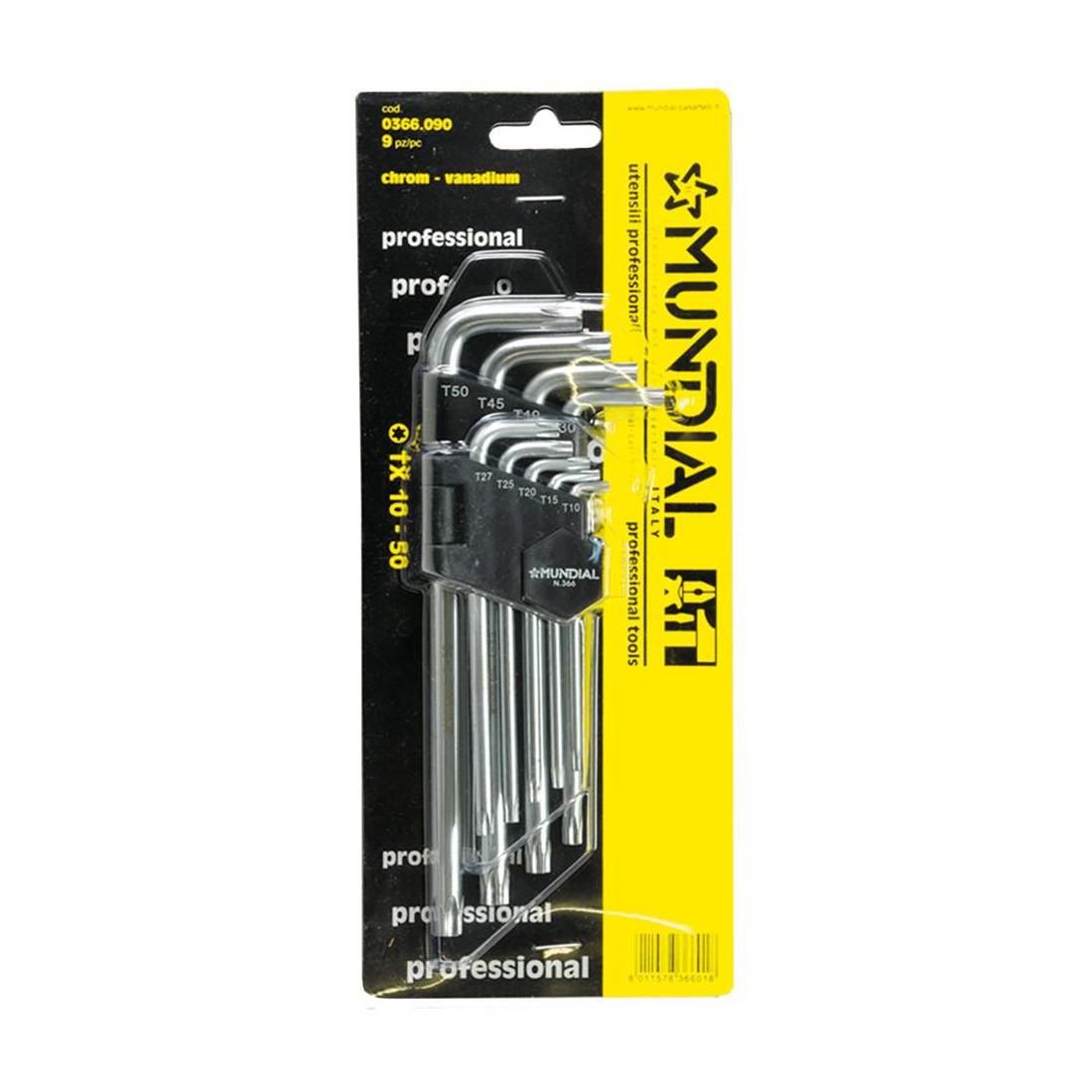 Finitura in acciaio cromo vanadio, tipo lungo. Clip in plastica. Composizione: T10, T15, T20, T25, T27, T30, T40, T45, T50.