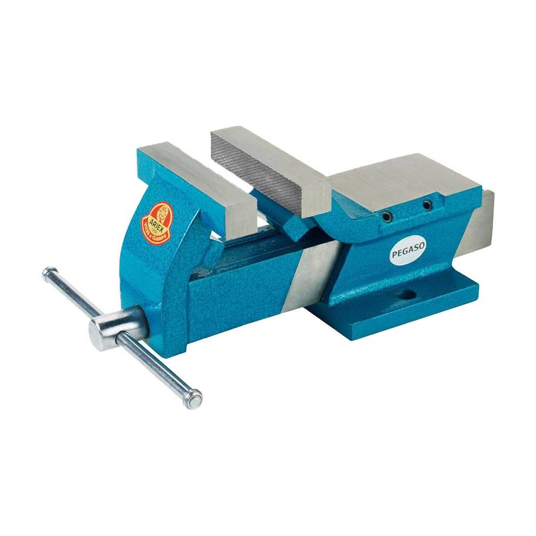 Interamente costruita con piatti d'acciaio forgiato. Ganasce serratubo zigrinate fisse, realizzate in acciaio e temprate ad induzione.